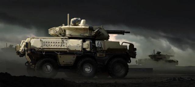 本文将介绍他设计的 6 × 6 装甲战斗车辆系列,大家看一下他是不是一位真正的高级概念设计师。这个装甲战斗车辆被他命名为"山猫(Lynx)",似乎预示它有灵活的机动性和凶悍的火力,从展示的效果图来看,确实具有这样的能力。