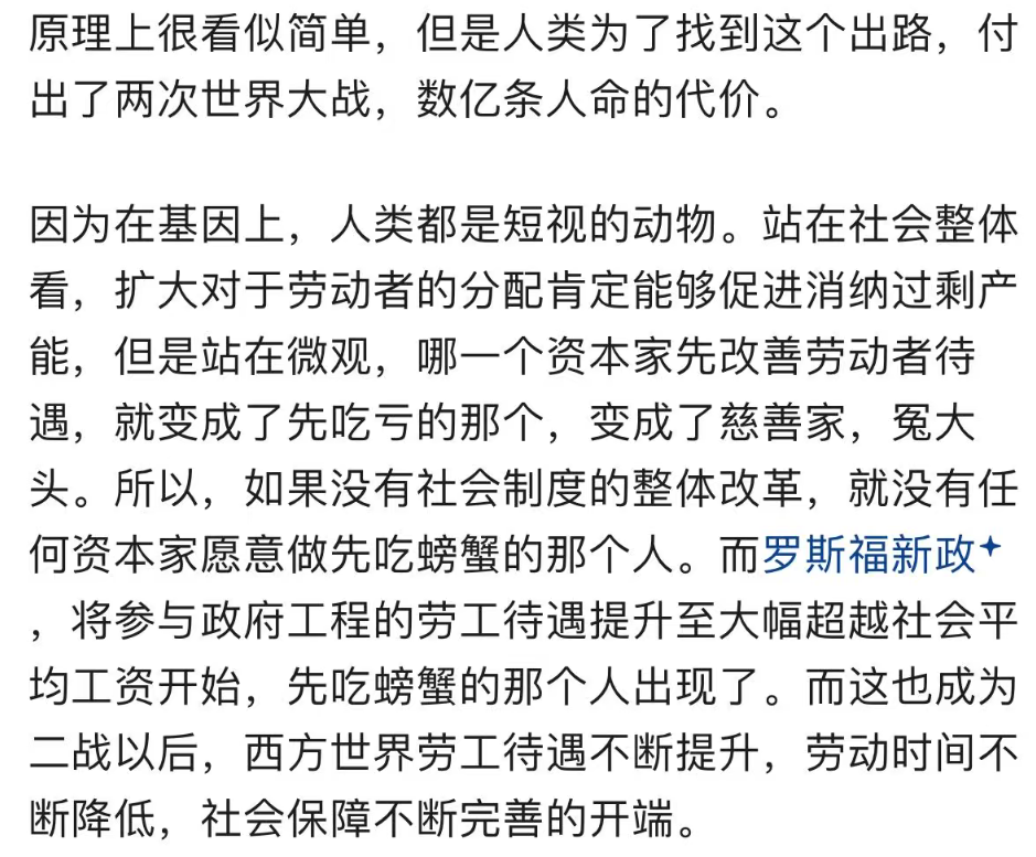 在这个方面,罗斯福新政是有功劳的,因为他成为第一个吃螃蟹的人,为其他国家提供了经验。
