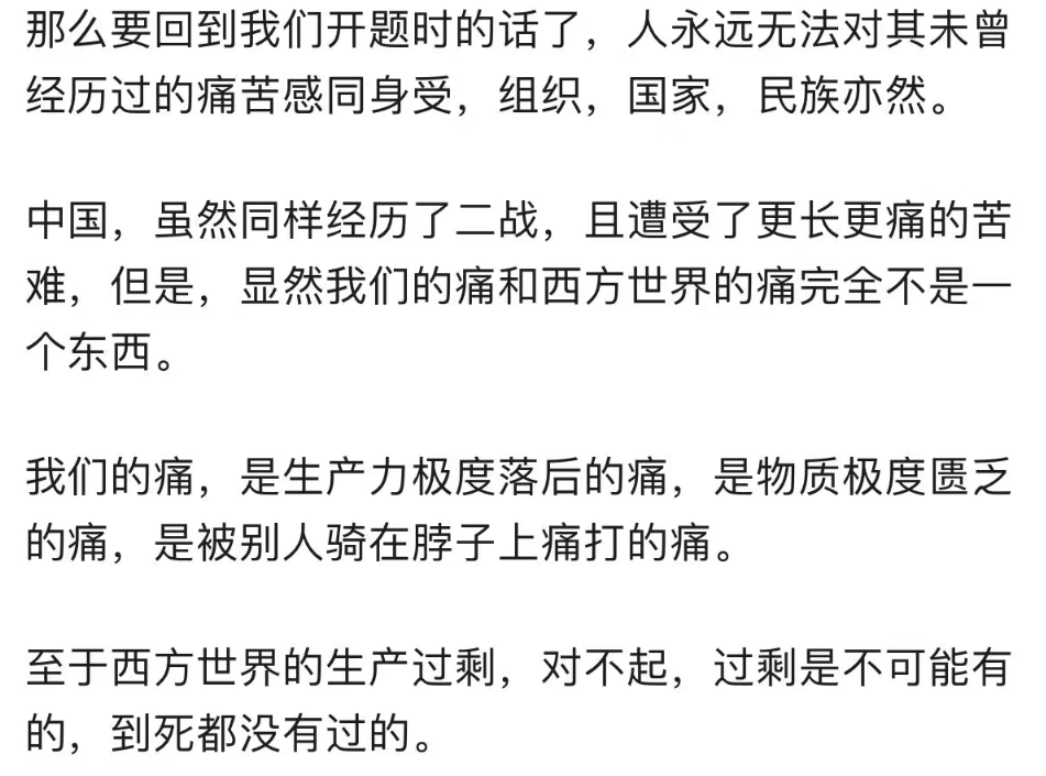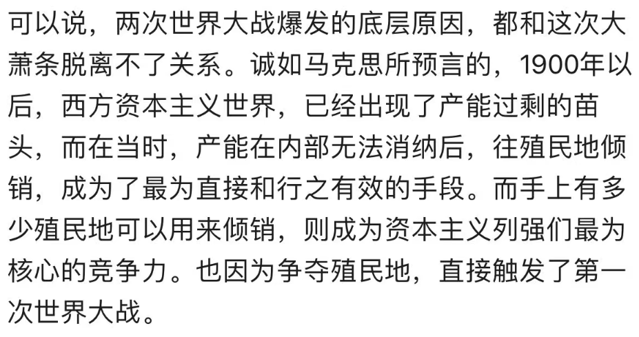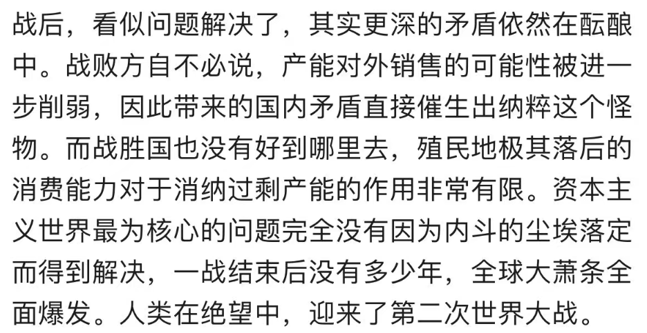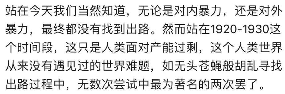 他没有直接从问题本身去谈,而是开始讲起了百年前的历史,主要是一战和二战。