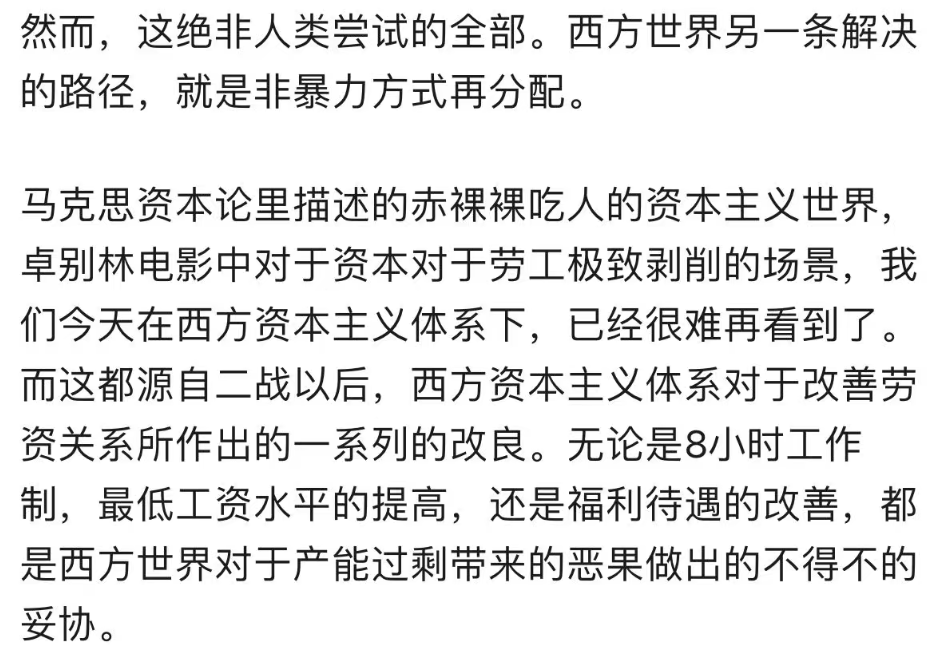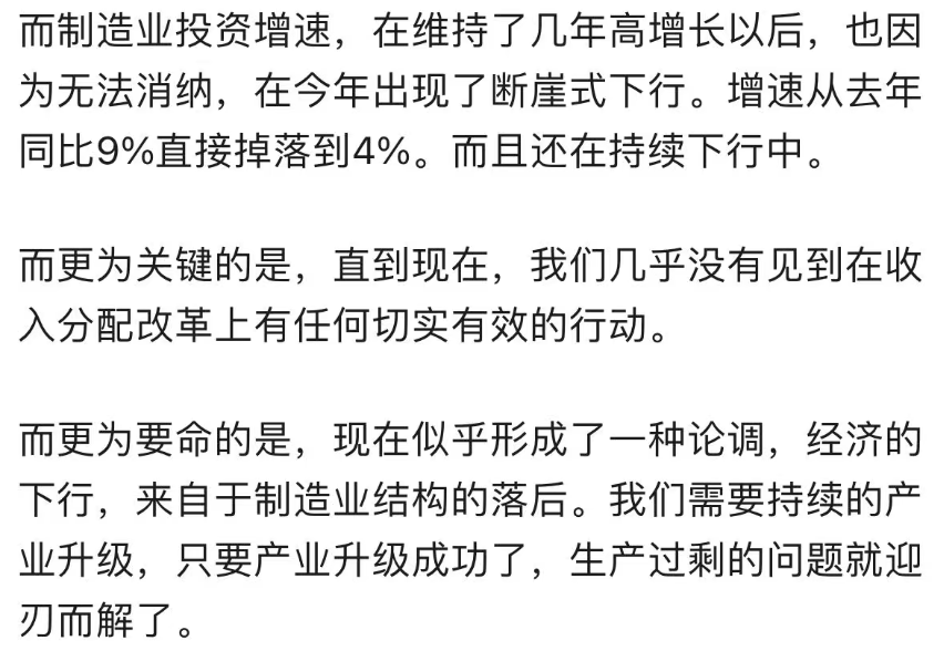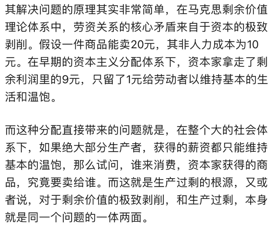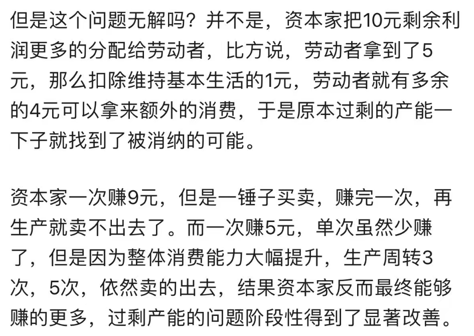 从这个角度来说,我同意这位刀客兄所说的,我们究竟需要一个怎样的发展前景,是需要更多的生产,还是让人们有更好的消费空间和意愿,以及强大的消费能力,这些都是需要我们去思考,特别是我们的社会管理者。