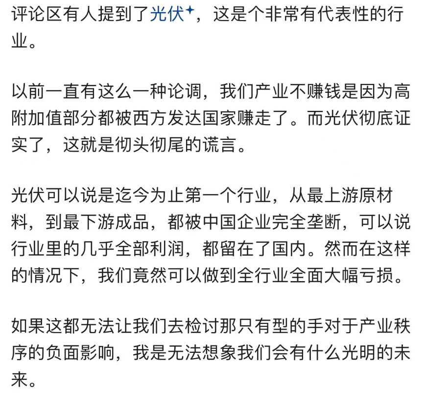 在这方面,光伏就成为这位刀客兄的最佳证明,都世界第一了,而且上下游整个环节都是自己控制的,可是普通从业者的福利并没有因此而上升。