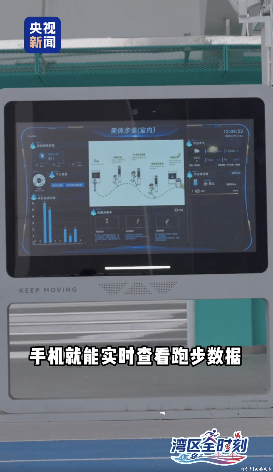 当“专业赛场”和“市民健身房”间的壁垒被打破,广东奥体中心体育场二层升级为全天候全民健身平台,市民在智慧运动跑道跑完800米,手机就能实时查看跑步数据。